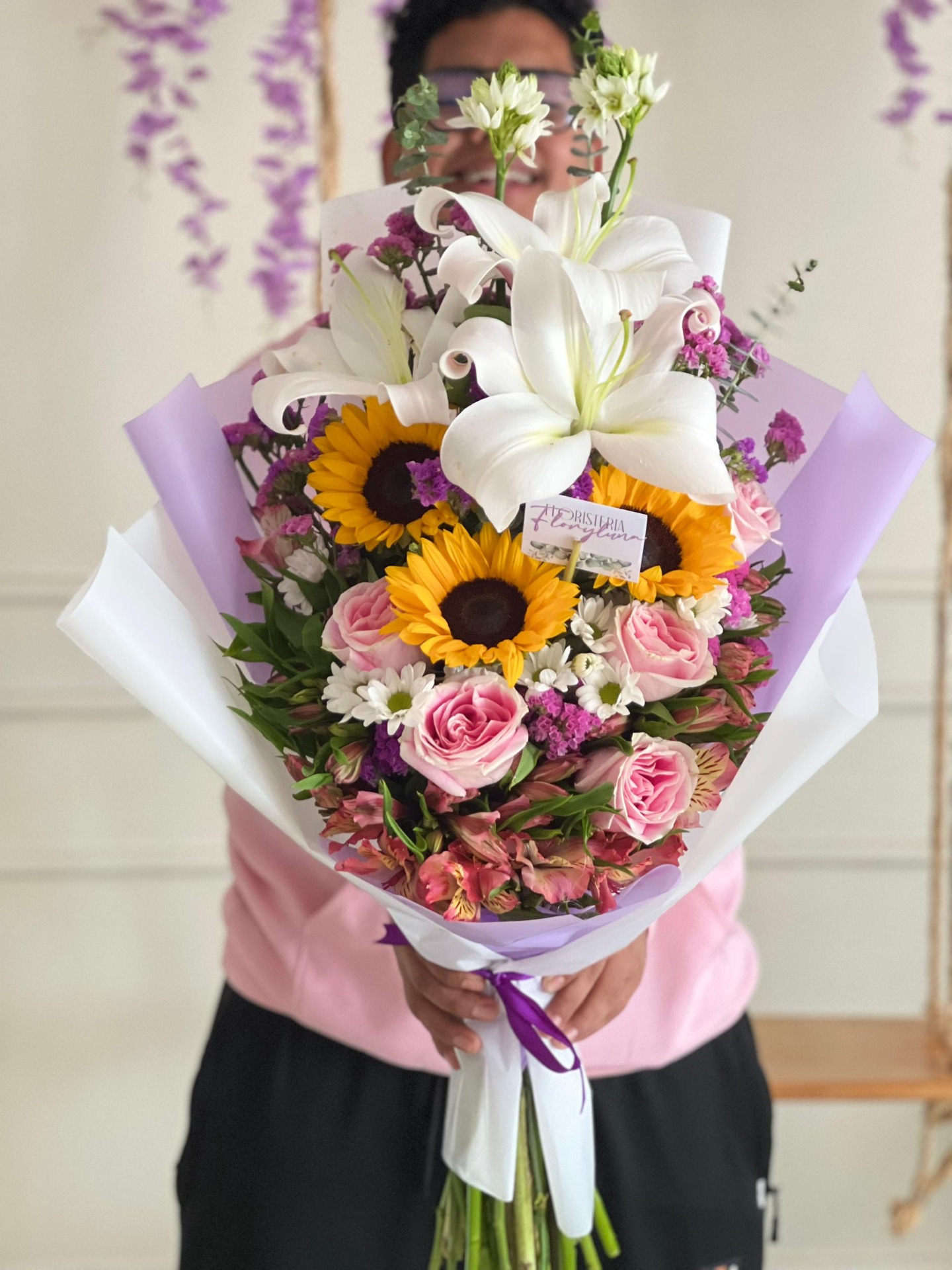 Recordando que trabajamos con flores naturales las cuales nacen todas únicas y diferentes en tamaños y colores , lo cual dificulta que un arreglo sea la réplica exacta de otro.